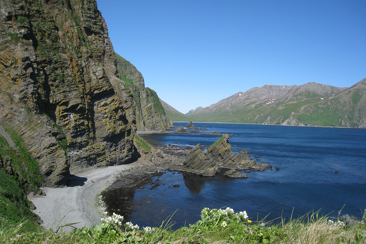 Высадка в бухте Преображенская на острове Медный. Осмотр побережья и морских ландшафтов.