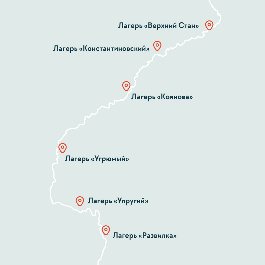 Проживание: стационарные лагеря на реке Жупанова