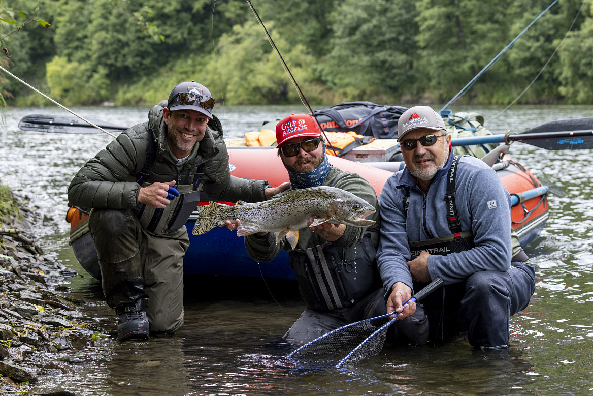 Она является роддомом для большинства видов тихоокеанских лососей. Это одно из немногих мест в мире, где обитает популяция самой крупной микижи (Salmo Mykiss). Благодаря высокой продолжительности жизни (микижа живет в этой реке в среднем 9-11 лет), она достигает длины до 75 см и веса – 7 кг. Этот вид мы тщательно охраняем, рыбалка на него возможна только по принципу “поймал-отпустил”.