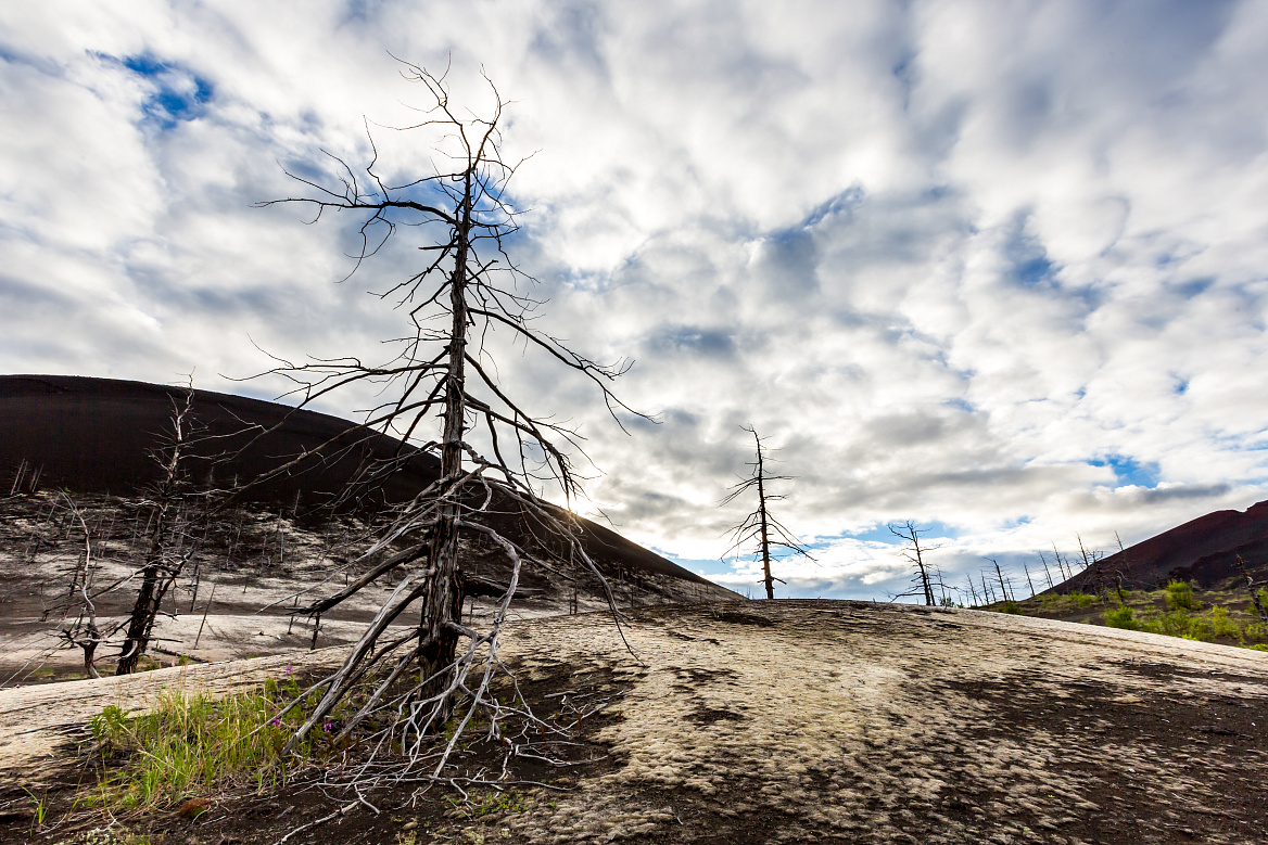 Также, у подножия Толбачика находится знаменитый “мертвый лес”: лавовые потоки и пепел накрыли деревья, превратив их в окаменелости. Сейчас это одно из самых мистических мест полуострова, где можно буквально пройтись по следам природной катастрофы.