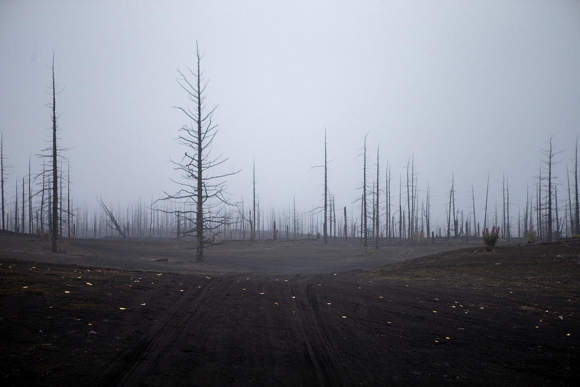 Мёртвый лес у подножия Толбачика появился после грандиозного извержения, когда лавовые потоки и пепел накрыли лес, а деревья сгорели и окаменели. Сейчас это одно из самых мистических и притягательных мест Камчатки, где можно буквально пройтись по следам природной катастрофы.