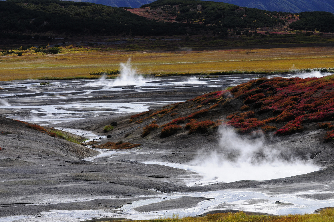 Долина гейзеров - одна из визитных карточек Камчатки. Второе по величине гейзерное поле в мире. Это одно из немногих мест на планете, где есть грязевые котлы, термальные источники и, конечно, гейзеры. Уникальное место, где Земля буквально дышит. Эта заповедная территория пользуется большой популярностью, но все еще является малодоступной, поскольку добраться сюда можно только вертолетом. Кальдера вулкана Узон – огромная вулканическая чаша диаметром около 10 км, образовавшаяся после мощного извержения 40 тысяч лет назад. Сегодня это одно из самых удивительных мест Камчатки. На её территории — кипящие грязевые котлы, термальные озёра, фумаролы и горячие источники с температурой до +90°C. Это живая лаборатория Земли, где можно увидеть, как природа создает ландшафты по своим древним законам!
